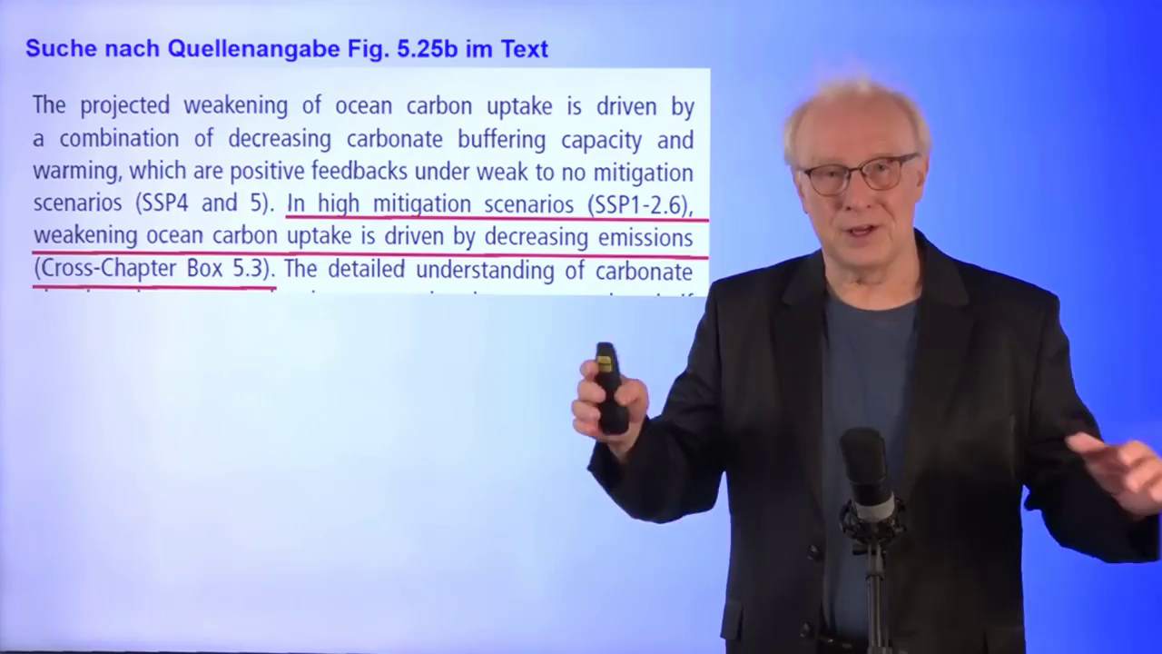 “In high mitigation scenarios (SSP1-2.6), weakening ocean carbon uptake is driven by decreasing emissions (Cross-Chapter Box 5.3).” (Seite 723)