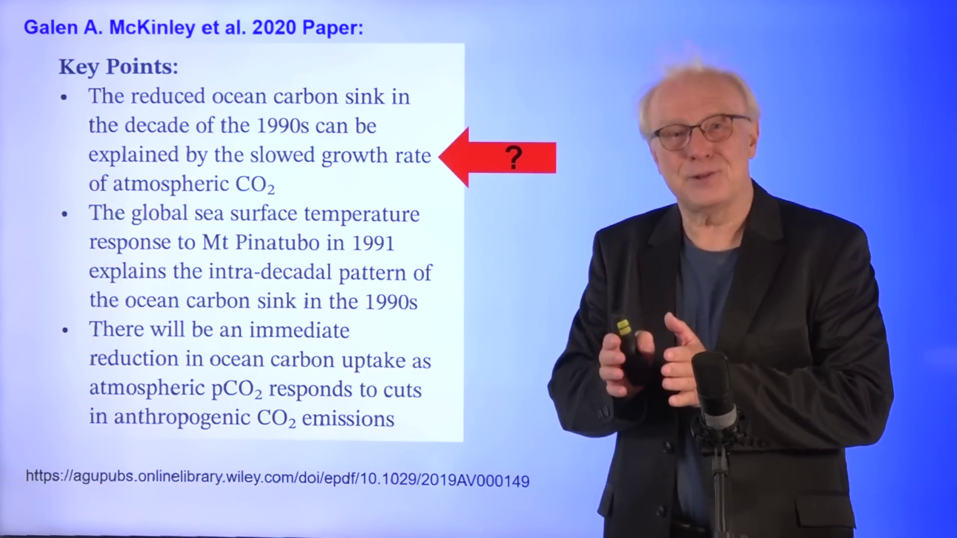 McKinley, die den globalen Verlauf der Ozean-Senkenleistung untersucht, hat den Vulkanausbruch ebenfalls berücksichtigt und schreibt, dass nur unser Emissionsverhalten zusammen mit dem Vulkanausbruch die beobachtete Senkenleistung in diesem Zeitraum erklärt.