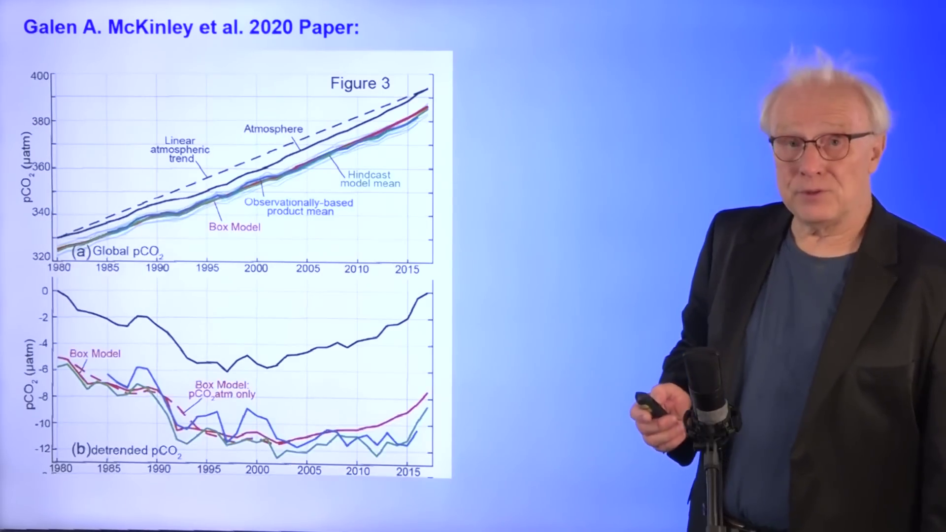 McKinley erklärt dem Leser sogar, warum die Senkenleistung so stark von unseren Emissionen abhängt. Die entscheidenden Unterschiede der Partialdrücke sind nur wenige mikro-Atmosphären. Kleine Änderungen unserer Emissionen bewirken also leicht eine merkliche Veränderung des Partialdruck-Unterschieds und haben somit einen Einfluss auf die Senkenleistung.